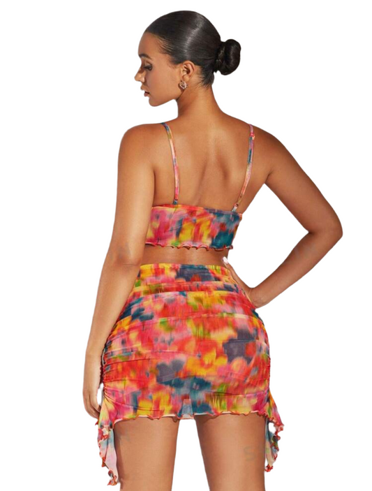 Tie Dye Cami Top & Draped Side Bodycon Skirt (Orange)